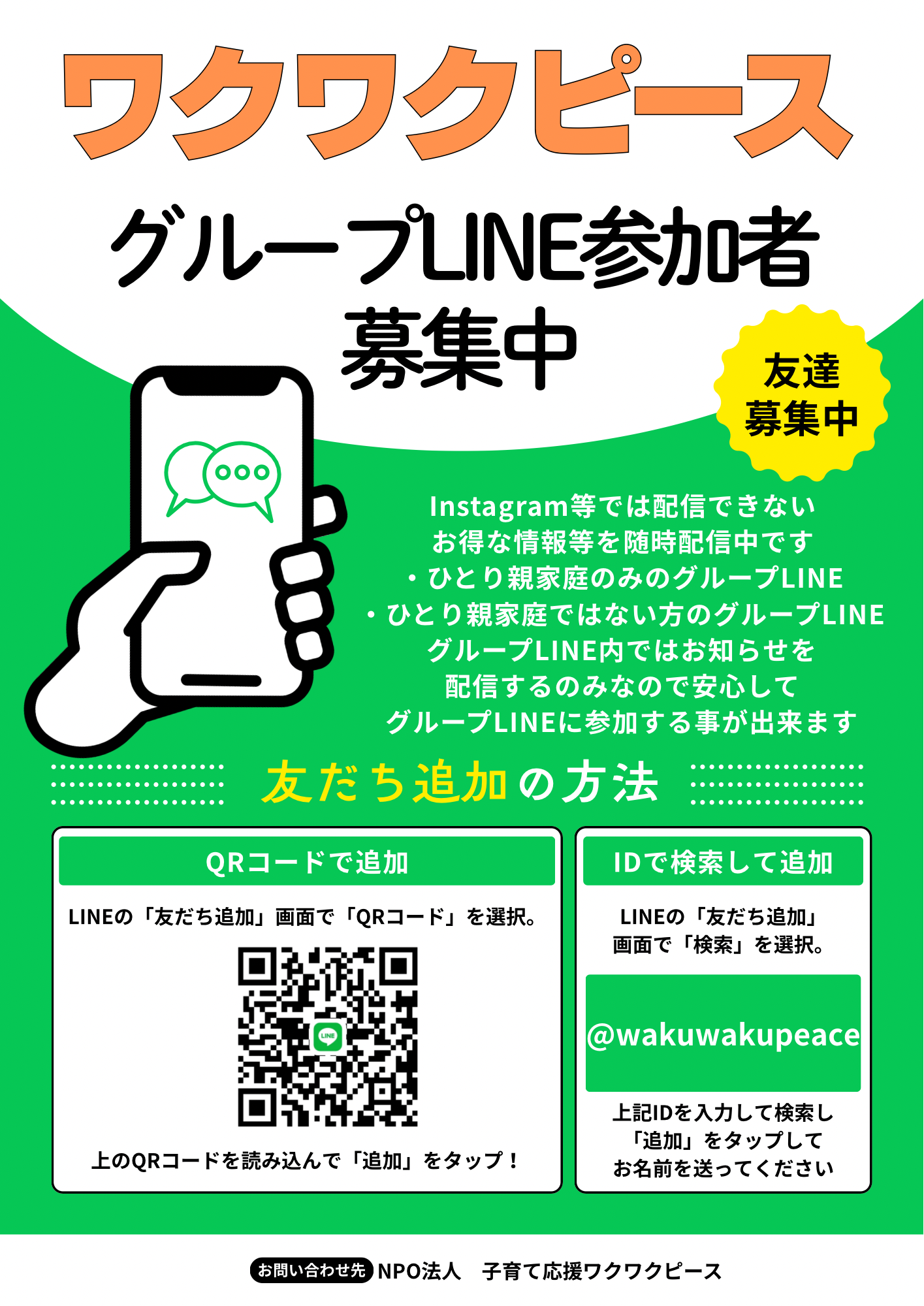 ひとり親(シングルママ・シングルパパ)・ひとり親ではない方のグループLINEにてInstagramでは流せないお得な情報を配信しております☆